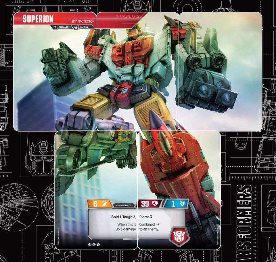 Obviously, you need the Enigma to combine. You do want to carefully time your combination. If you think you’re in a position where you’re likely to take a big hit from an opponent, it might be best to let them kill off one of the smaller guys and wait to combine on your NEXT turn. It may also be worth waiting in order to ensure you can form Superion while having at least a weapon and an upgrade on him.