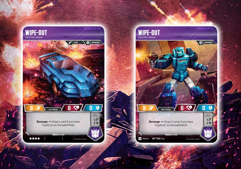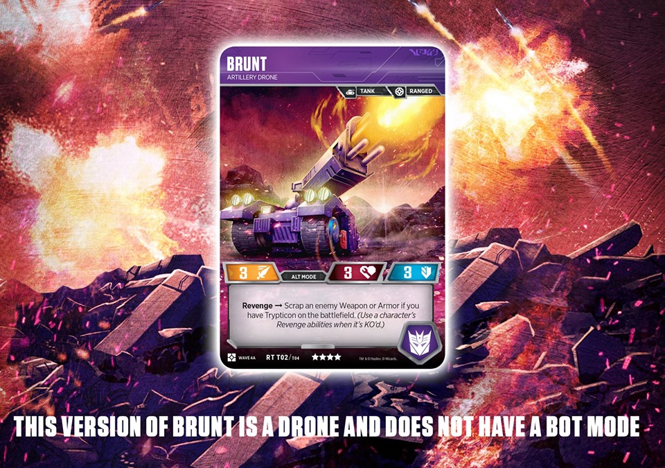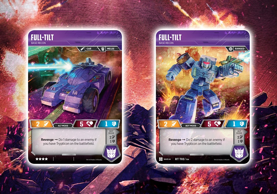 The actual card is, in a word, bonkers. I am generally not good at identifying when cards are good or “bad” as I generally want to try all of them out, but I knew that as soon as this was revealed that this is an insanely powerful card. You may initially balk at the 16* cost and say “wow, that’s way too much to commit to a single character that isn’t Metroplex, your teammate options are limited” and in some respects you may be correct. I think the power level on this guy far outweighs that specific “drawback.” His abilities, both on bot side and alt side, are direct counters to Major Shockwave. When you flip to his alt mode, you get a better Treasure Hunt revealing the top 5 cards of your deck and bringing all upgrades into your hand and scrapping all actions. Theoretically, by turn two, you could have 9 cards to your opponent’s 3. Then, in his bot mode, every time he battles you draw a card and if you reveal an upgrade, stack the deck and gain Bold 1 or Tough 1 depending if you’re on the attack or defense. Not only do you draw a card, again as a hard counter to Major Shockwave, but you smooth out your hand by getting rid of your Improvised Shields, Handheld Blasters, etc.