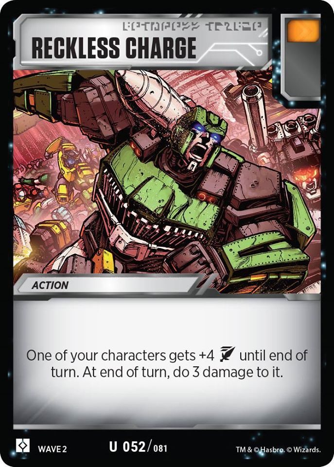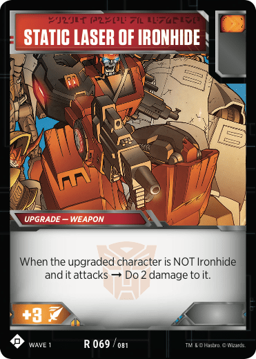 Other concerns with my battle cards came up with Reckless Charge and Static Laser Of Ironhide. Doing damage to yourself may seem counterintuitive or detrimental, but the consistency these cards add to the damage output while maintaining orange pips for flipping battle damage is more valuable that the problem of damage they cause can counteract.
