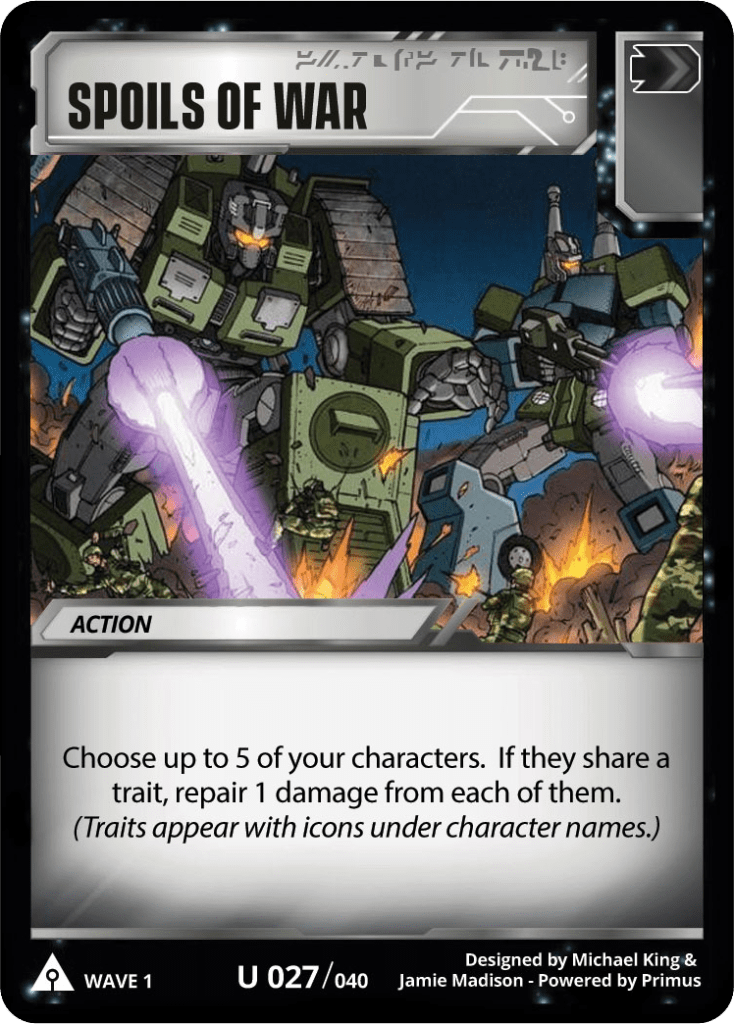 This new card will allow most combiner teams to repair 1 damage each, if they’re all still alive, that’s 5 damage repaired from your future combiner.