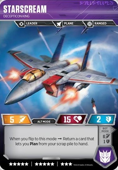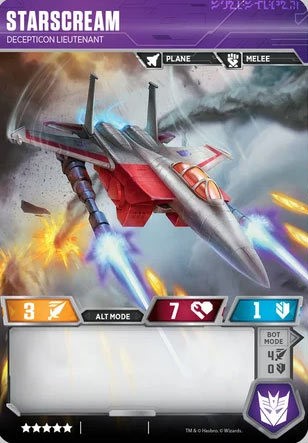 Starscream’s star costs are fairly high for how much damage he can output and making a Stratagem for each one would be tedious and further restrict who he can be paired with. We decided to hit multiple Starscreams at once without raising the star costs.