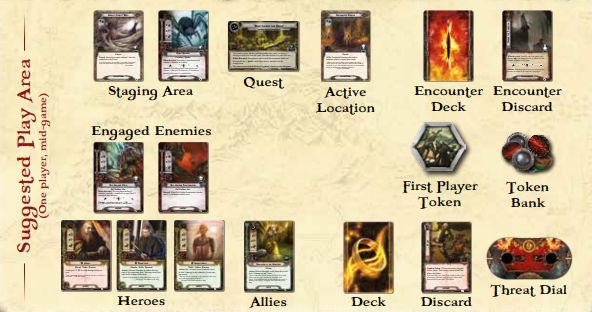 In LOTR, the encounter deck spits out enemies that threaten the health of player characters and allies, locations that generally make it more difficult to put progress on the current stage of the quest (progressing through all quest stages is the win condition), and treachery cards that serve as one time events that can hamper players in any number of ways. On top of that, many enemies have Surge abilities, which are activated by flipping over the top card of the encounter deck to check if that top card has the Surge keyword. This mechanic adds an additional degree of randomness that can cause the board state for players to cascade further into greater degrees of difficulty. On top of that, it helps to cycle through the Encounter deck, which can cause discarded cards to be reshuffled back into the deck if it ever runs out, forcing you to once again overcome the difficulties that you’ve already beaten (or avoided).