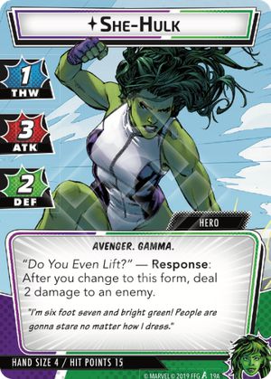 For this first match-up as we revisit Rhino from the core box, I randomly selected She-Hulk as my hero.
