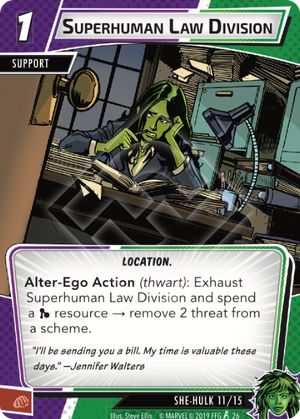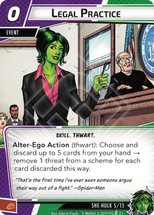 I don’t think I’ve ever played Legal Practice, but it might serve as a decent way to lower threat on schemes if you’re really in a pinch.