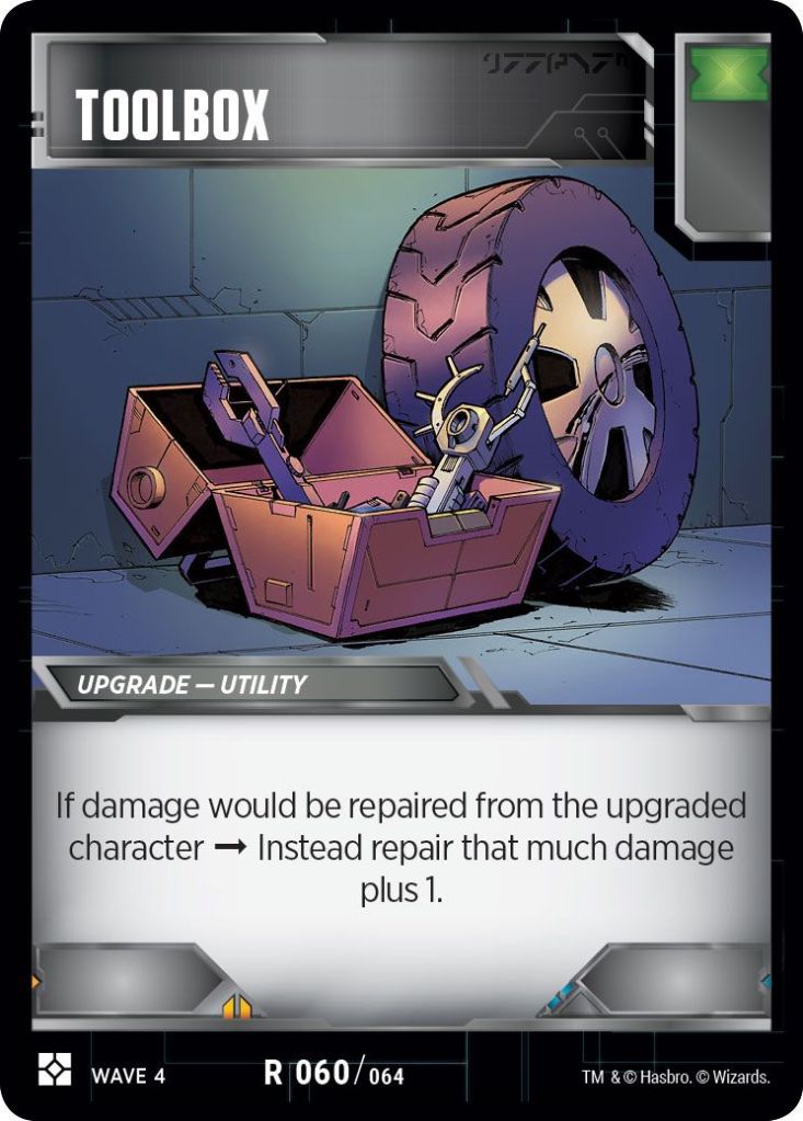 In particular, Toolbox allows you to now repair 2 when you flip into alt mode, while also granting you Pierce 1 when you’re back in Bot mode.