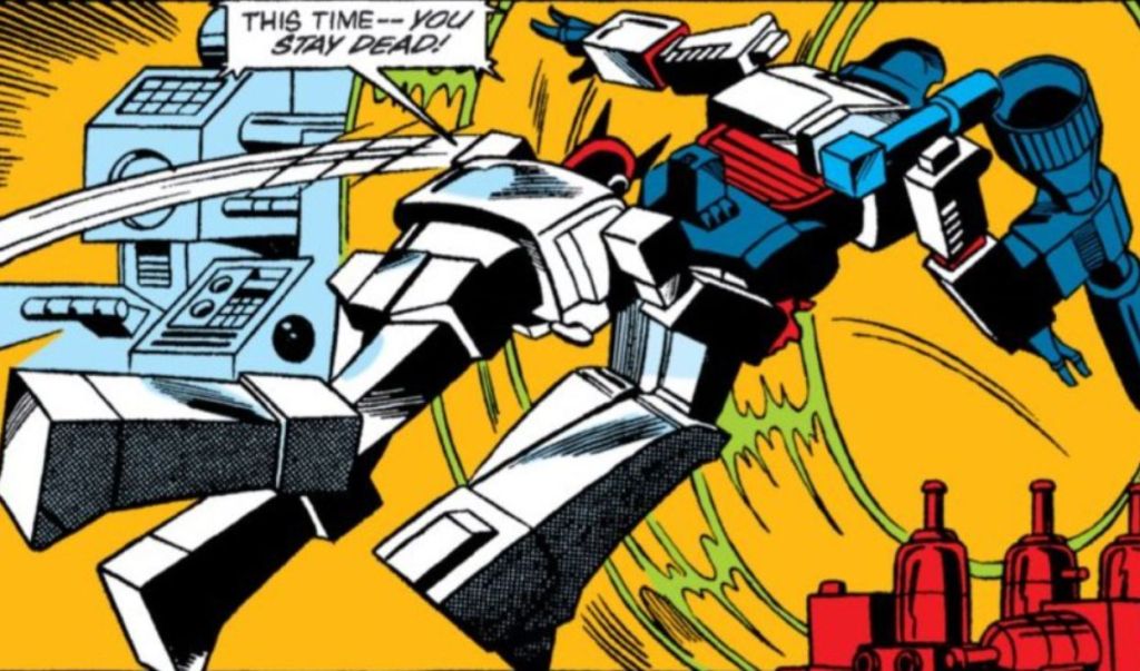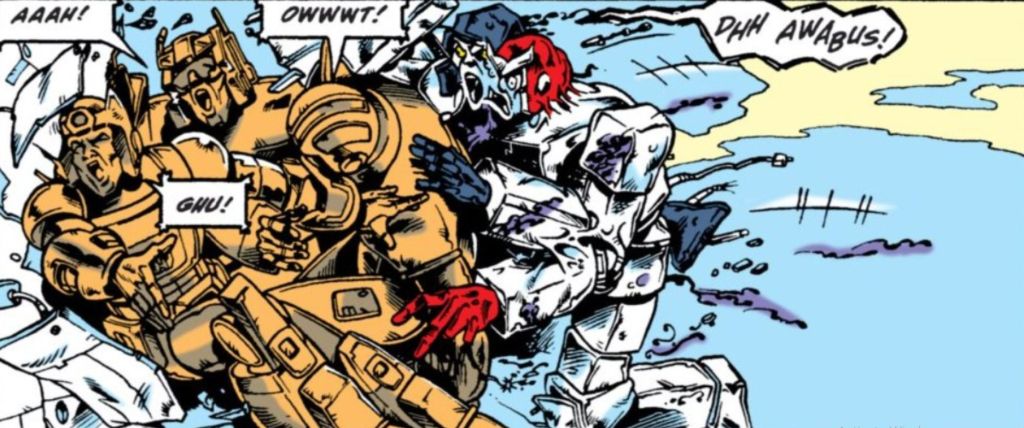 For those of you who didn’t grow up reading the original Marvel US G1 comic book run, Megatron and Ratchet were fused together when Ratchet sabotaged a transdimensional time portal and tackled Megatron through it.