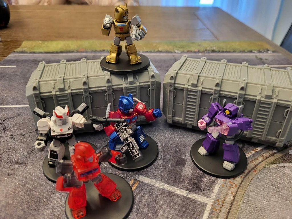 It’s an unofficial Transformers tabletop miniatures game that is designed to be played solo or cooperatively against an AI enemy that is activated by a deck of behavior cards. It is inspired by “boss battler” games, where a team of characters will have to work together to defeat a powerful enemy in an encounter.